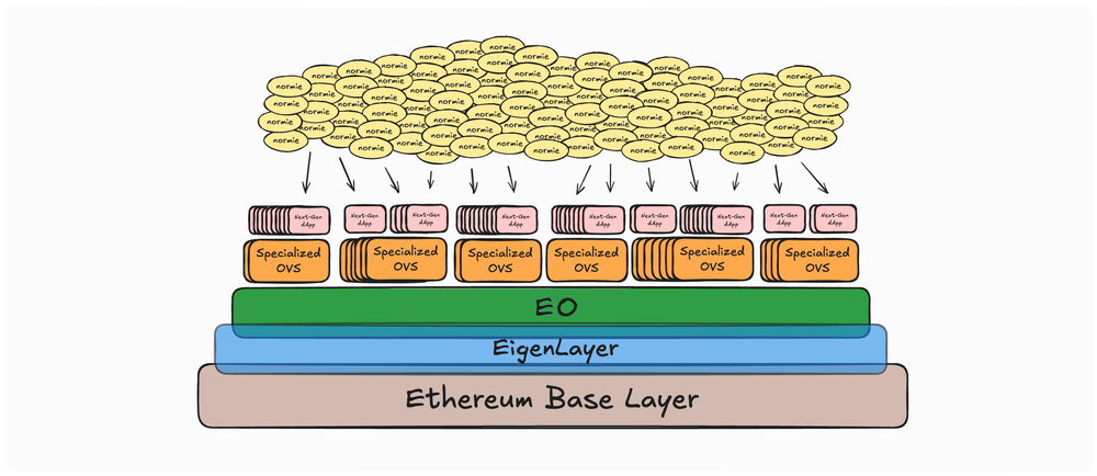 OVS blockchain (Oracle Validated Services) bring Web2's data specialization to blockchain dApps through a clear four-layer architecture: